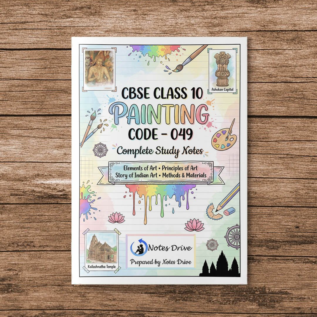 Prepare smartly for your CBSE Class 10 Painting (049) exam with beautifully designed colorful handwritten PDF notes specially made according to the latest CBSE syllabus. These notes are perfect for quick revision, concept clarity, and scoring high marks in theory exams.