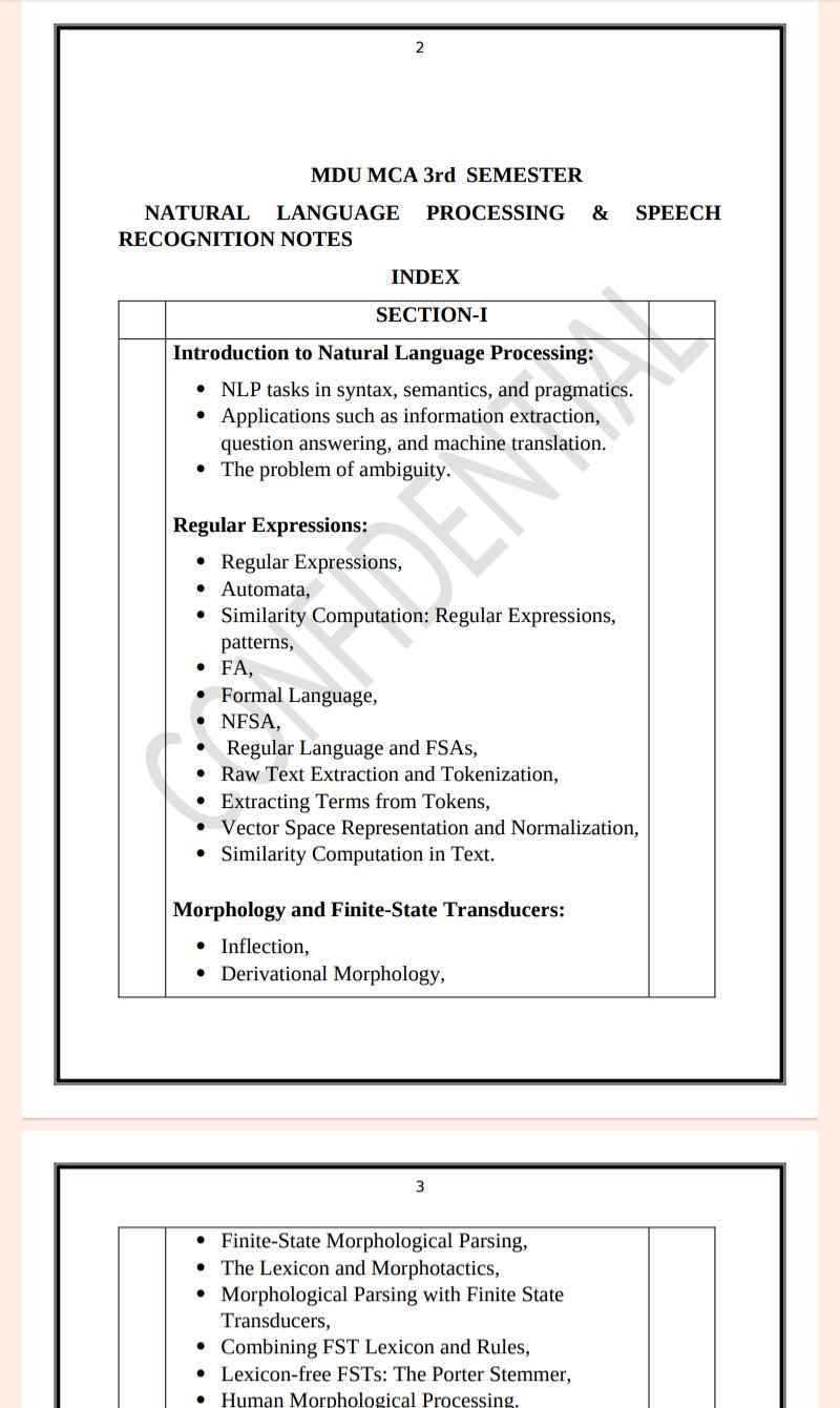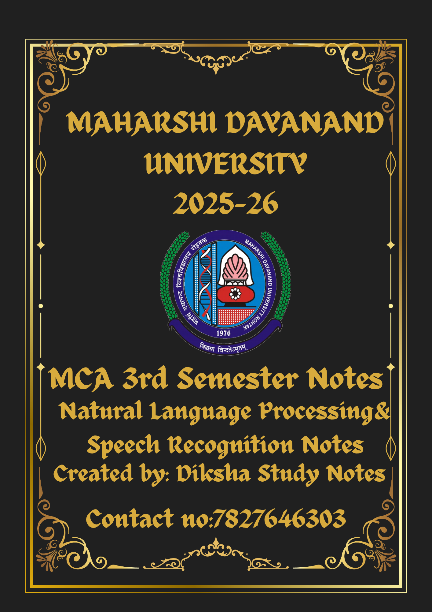 Maharshi Dayanand University | MCA 3rd Semester Natural Language & Speech Recognition Notes PDF  – Complete Printable Notes